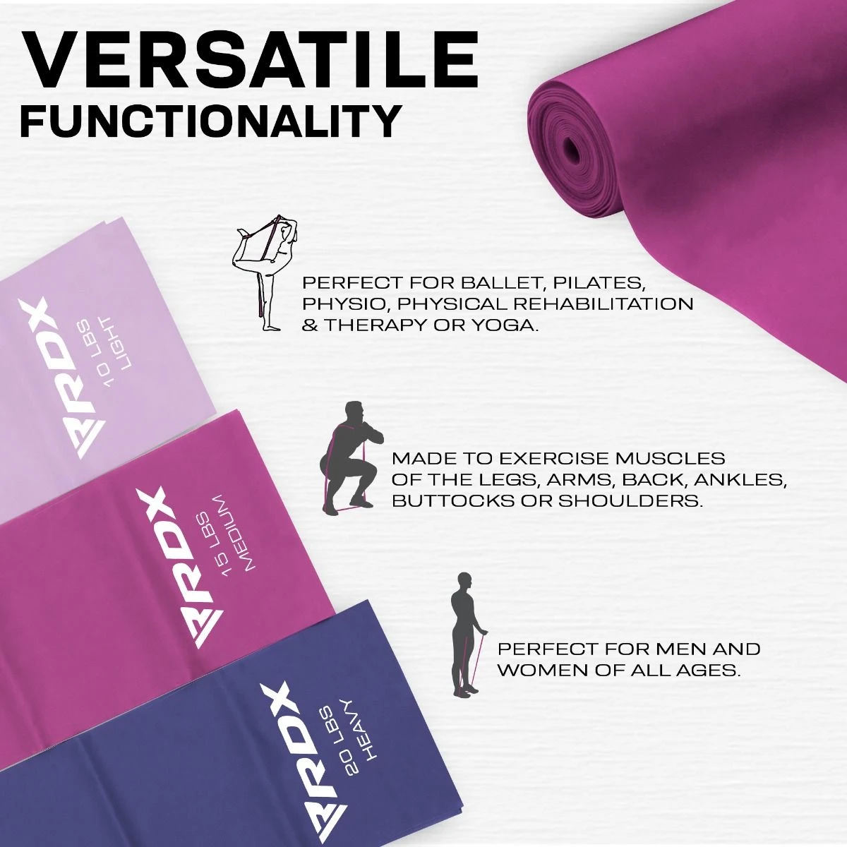 Elastic flat resistance bands are the perfect fitness gear for staying fit at home and keeping up with your training in your home gym. Our light resistance bands are an effective and gentle equipment for Yoga, Pilates, Physio or simply to just stretch and strengthen muscles. Equally suitable for light, medium, and heavy resistance workouts to tone muscles. Custom made for all types of physical therapies and rehabilitating of torn rotator cuffs, bad elbows, and damaged knees.
