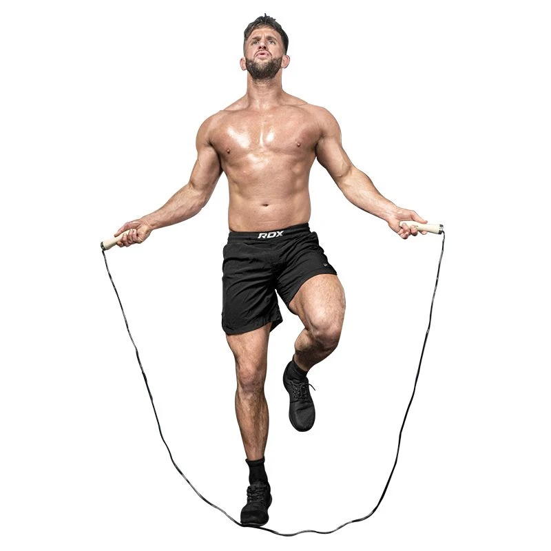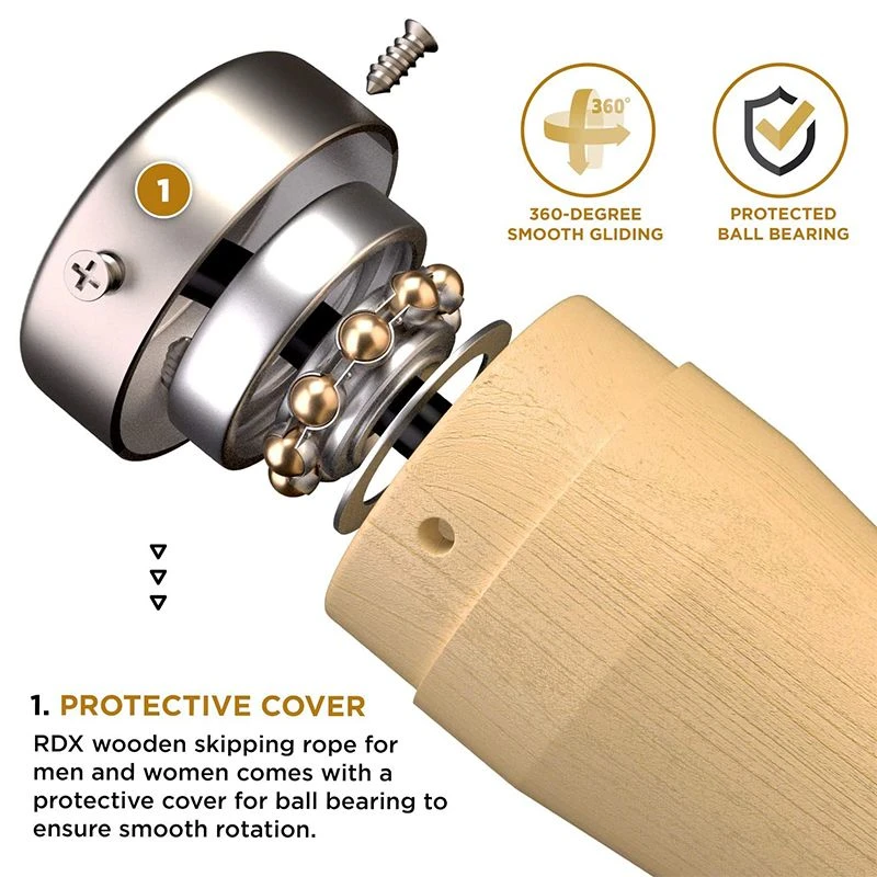 A classic take on the timeless conditioning and cardio build-up exercise tool used by old-school boxers and footballers, the RDX jump rope with wooden handles helps maximize any workout. With its simple design and robust built, this wooden skipping rope provides great use for all fitness and ability levels, and can withstand even the most intense training sessions at home gym or outdoor. Smooth wooden handles are contoured to provide ergonomic grip while you build up momentum. Sealed ball bearings facilitate uniform rotation for a smooth precision workout. Built-in ball bearings with 360° smooth rotation and sturdy PVC wire makes this rope the ideal fitness equipment for kids, beginners and pros. Easy to manage speed and manipulation of rope for both freestyle and casual skipping. This lightweight and portable wooden jump rope features a length of 10.3ft with thickness of 5mm to withstand the most intense workouts for a long time. Jump rope kids comes with an exclusive workout guide so you can meet your fitness goals easily and an antimicrobial pouch to take it anywhere anytime.