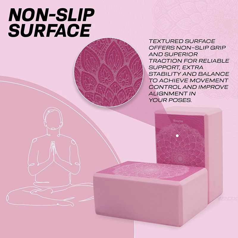 Add this optimally sized yoga block (23*15*9.8cm) to your home gym essential and yoga accessories for increased versatility in your practice. Cultivate healthy energy flow by bringing balance and alignment in your form and everyday life with the RDX EVA Foam yoga blocks. Made for beginner and intermediate yogis alike, this sturdy foam yoga block provides strong support for your bridge poses, and comfortable lift to perfect your alignment in the crescent moon stance.