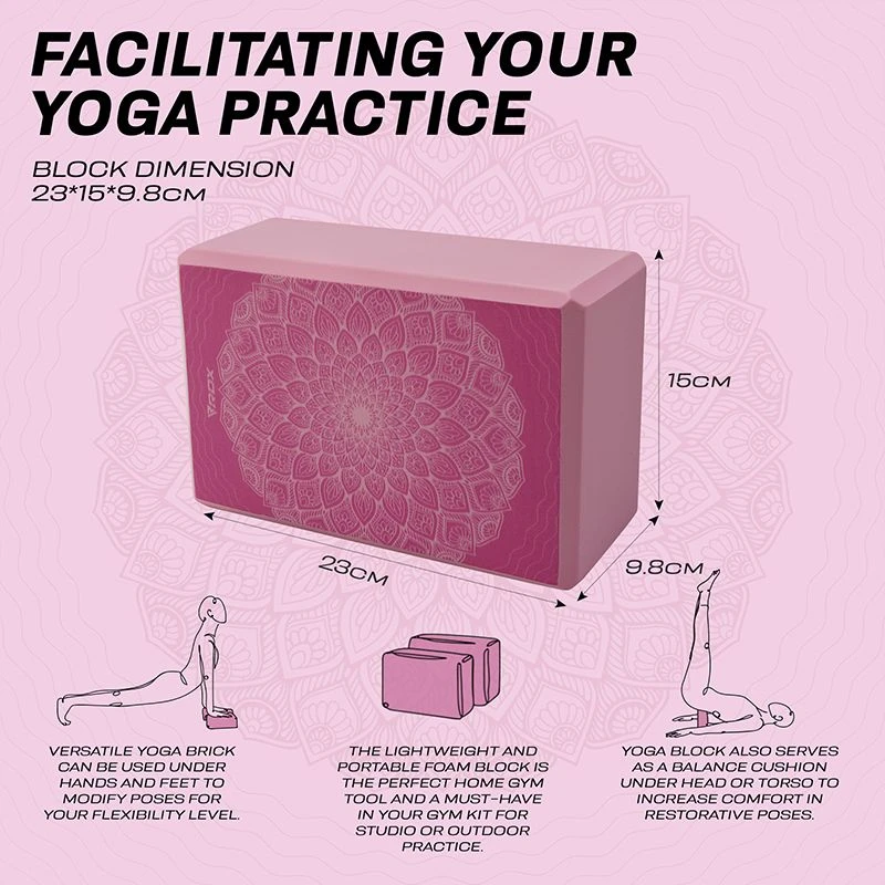 - FACILITATING YOUR YOGA PRACTICE – Versatile yoga brick can be used under hands and feet to modify poses for your flexibility level. Ideally sized (23*15*9.8cm) yoga block also serves as a balance cushion under head or torso to increase comfort in restorative poses. The lightweight and portable foam block is the perfect home gym tool and a must-have in your gym kit for studio or outdoor practice.