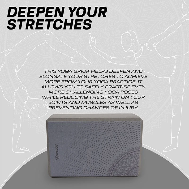 Made for beginner and intermediate yogis alike, this sturdy foam yoga block provides strong support for your bridge poses, and comfortable lift to perfect your alignment in the crescent moon stance. Cultivate healthy energy flow by bringing balance and alignment in your form and everyday life with the RDX EVA Foam yoga blocks. Add this optimally sized yoga block (23*15*9.8cm) to your home gym essential and yoga accessories for increased versatility in your practice.