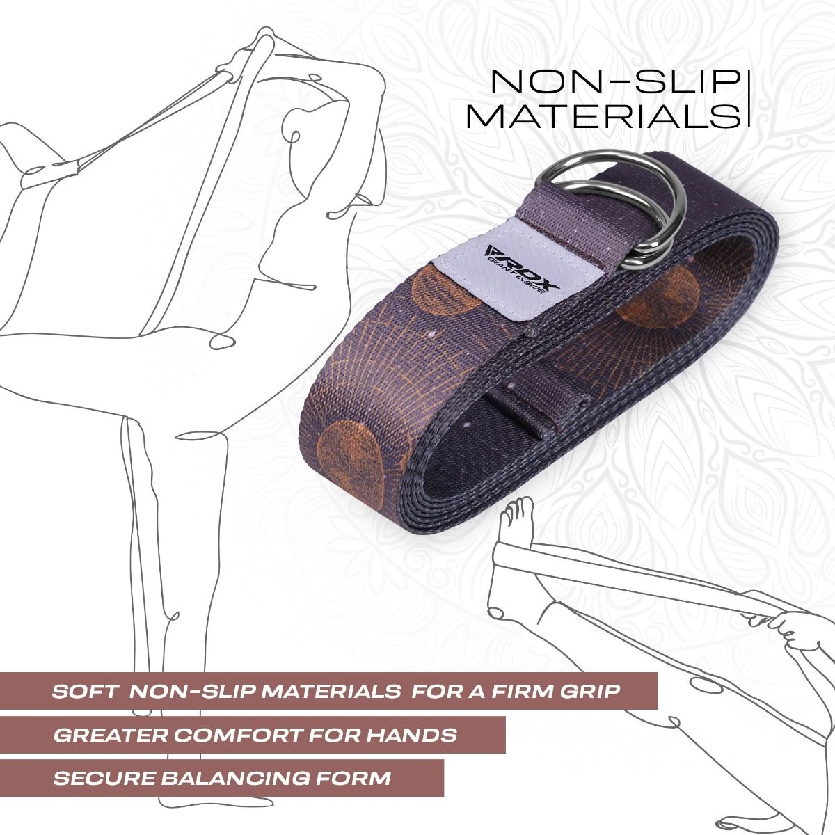 Bridge the gap between your current fitness workout and yoga goals with RDX’s eco-friendly Yoga Straps. Deepen your yoga practice and maximize your performance by challenging flexibility, strength and endurance with this versatile yoga accessory. Made from thick and sturdy premium poly-cotton that is sustainably sourced and holds firm to give you confidence for extending reach and improving mobility in more challenging poses. Our stretching strap is easy to use and simple enough to tie up for your use, allowing you to grab limbs that would be otherwise challenging. Adjustable 8ft long loop strap conforms to perfect alignment of shoulders and back, or stretch out muscles of legs and arms for unlimited yoga poses. Ideally endorsed with 3.8cm width and 0.13cm thickness, our yoga strap is perfect for physical therapy and rehabilitation, yoga exercises at home, Pilates or athletic warm-ups at the gym. Made with soft materials with adjustable double D rings which are rust-proof and unbreakable. A must-have in your yoga kit for studio practice or working out at your home gym. Our easily machine washable yoga stretch strap offers convenience of use and non-slip grip for sweaty hands during intense workouts. Capable of withstanding wear-and-tear from daily, vigorous routines. Comes with a carry bag and exercise manual so you won’t miss any workout day. Pick your favourite design to showcase your unique personality.