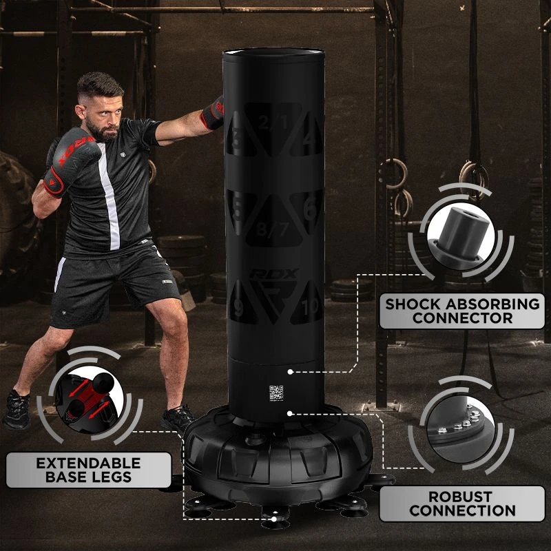 Take your training to the next level with our extraordinary kickbox bag, built to endure the fiercest blows you can deliver. This exceptional bag seamlessly blends durability and resilience, standing tall against relentless use without compromising its shape. But that’s not all – we’ve included top-of-the-line punching bag gloves that offer exceptional shock absorption, ensuring your hands stay safe and sound as you unleash powerful strikes. The punching bag anchors itself firmly in place, eliminating unnecessary movement and allowing you to fully immerse yourself in perfecting your technique.Discover a whole new level of training excellence with our exceptional kickbox bag. It’s time to unleash your potential and conquer new heights in the world of combat sports.