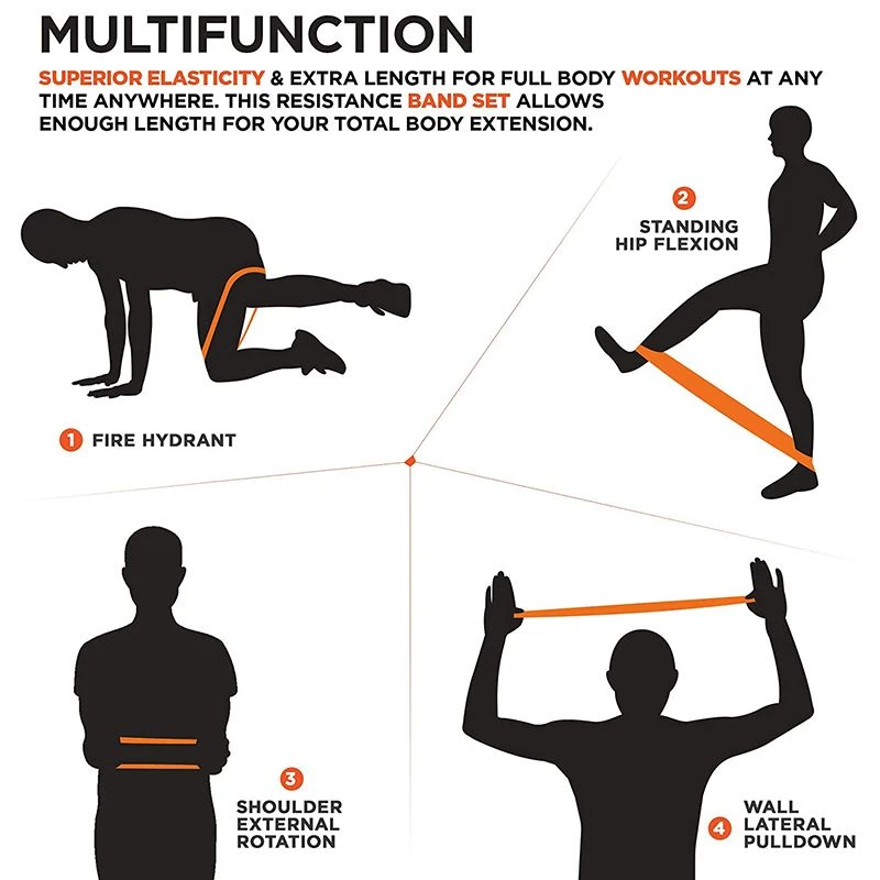 - MULTIFUNCTIONAL LENGTH – expand your training and get the physique of your choice with power bands that features uniform thickness, superior elasticity & extra length for full-body workouts at any time anywhere. This resistance band set allows enough length for your total body extension. It can be used to exercise all parts of muscles such as arms, chest, abdomen, glutes and legs, also can be used for physical therapy, recovery or to increase agility.